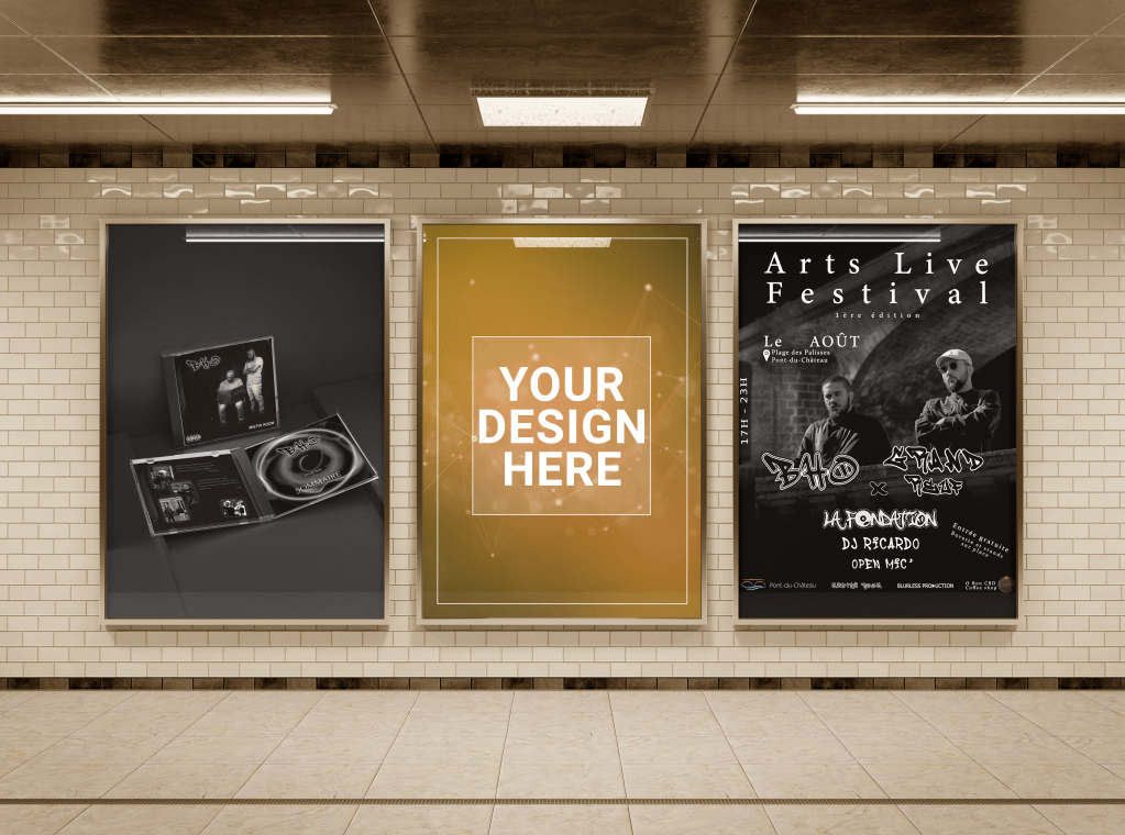 • Affiches, flyers, covers d’albums, cartes de visites, menus, logo, identité visuelle ect…